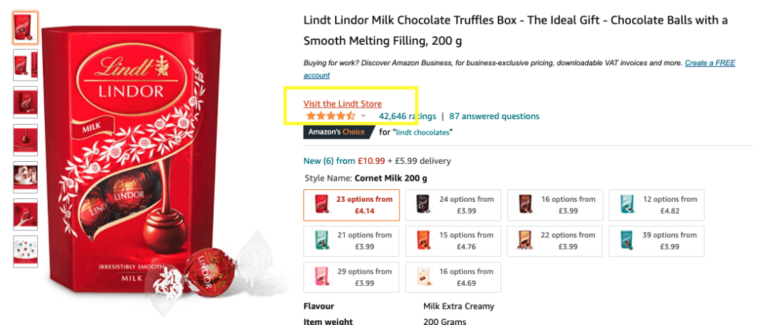 对于品牌注册卖家来说,品牌商店可以自由创建,并且是一个很好的品牌建设组件,可以掌控客户体验。这是亚马逊内的一站式商店,旨在展示品牌。它还将为客户提供一种快速、简单的方式,以便在所有产品详细信息页面上购买您的品牌。品牌商店链接显示在拥有品牌商店的企业页面的标题下方。