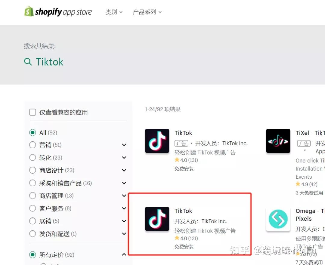 Shopify后台找到应用商店,应用商店里直接搜索Tiktok即可,安装到Shopify独立站中来。
