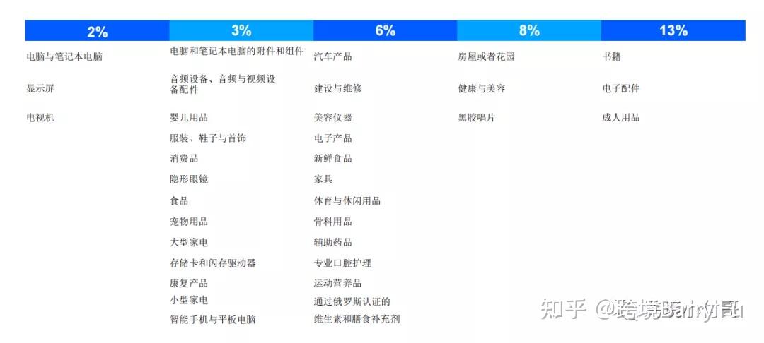 根据AKIT(俄罗斯电子商务企业协会)公布的信息,俄罗斯国内和国外跨境平台的热门产品品类有:电子和家电、服装鞋类、食品、家具和家居、美容健康5大类。数据显示,俄罗斯国内平台的电子和家电类平均订单达8.8万卢布,而国外跨境平台则为1万卢布。这些热销品类,同样也受用于Ozon平台。据Ozon官方透露,目前平台招商的主要方向是,电子产品和居家用品。服装鞋类以及美容用品,也一直是俄罗斯电商市场的宠儿,在各种促销节日,都是俄罗斯人抢购的商品。